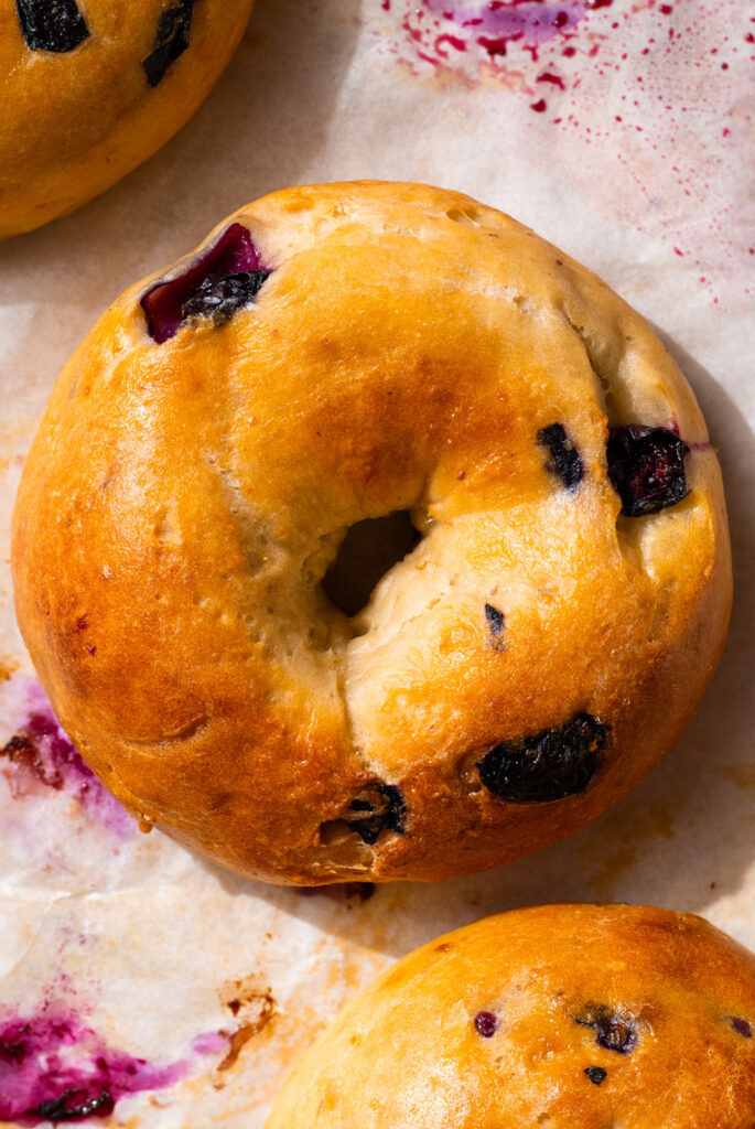 Αυτά τα bagels με 2 υλικά τα έχω δείξει ξανά στο παρελθόν. Είναι φουλ πρωτεϊνικά, θρεπτικά, γρήγορα και πάνω από όλα εύκολα. Δεν χρειάζονται τίποτα παραπάνω πέρα από ένα μεγάλο μπολ, ένα ταψί και τα χέρια σου. Αυτό όμως που τα κάνει να διαφέρουν από την κλασική συνταγή είναι η προσθήκη των blueberries. Όταν ψήνονται, σκάνε και βγάζουν μια ελαφρά γλυκύτητα, οπότε ταιριάζουν τέλεια με φυστικοβούτυρο, αμυγδαλοβούτυρο και ένα σωρό αλλές γλυκές παραλλαγές.